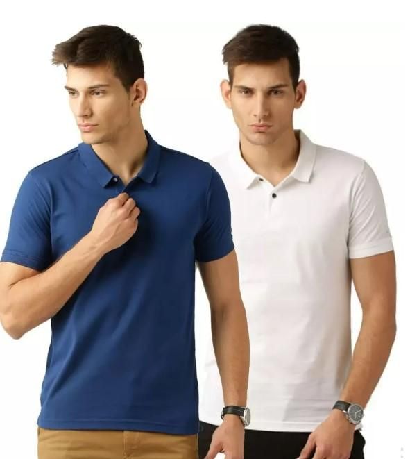 Poly Cotton Solid Half Sleeves Mens Polo T-shirt (Pack of 2)